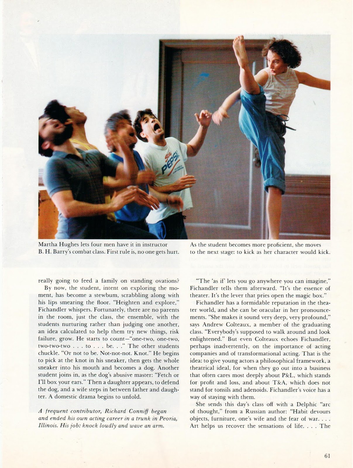 This is a rare article. A major magazine doing a feature on a college theater program. It's cool to get a glimpse in. If you know of any other such articles, let me the know the name and date. Or send it to me and I will put it up here. Thanks.